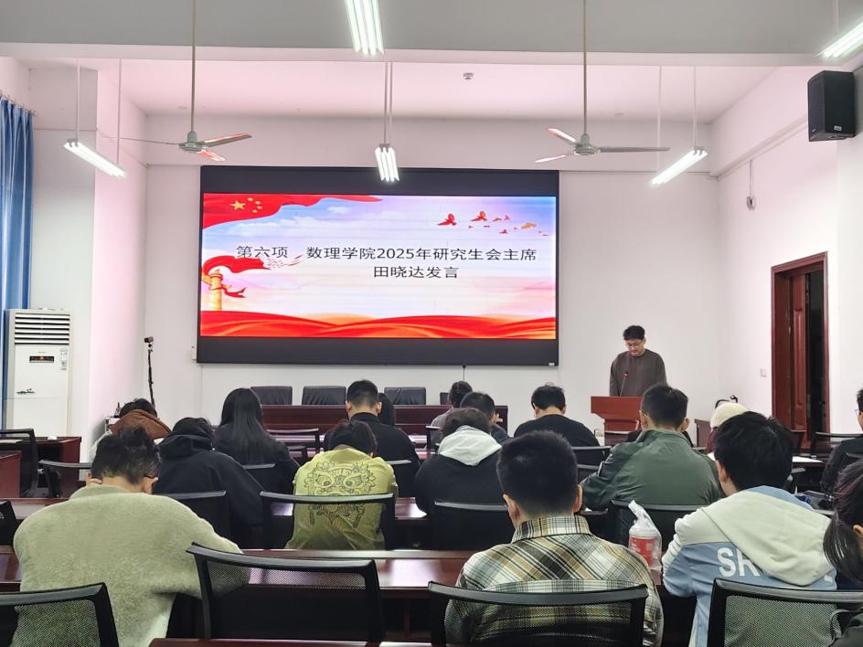 田晓达同学向学院领导、老师、同学及上一届研究生会与团总支成员表达了诚挚感谢。他作为新一届研究生会主席明确了研究生会的核心定位,强调其作为学校与研究生的桥梁纽带,既是服务同学成长、助力“双一流”建设的平台,也是践行“四自”理念、引领校园学术文化的重要阵地,更是为党和国家培养创新人才的“蓄水池”与“生力军”。